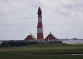 ein Wahrzeichen Eiderstedts, der Westerhever Leuchtturm, Schafe, die "Bewohner" der Deiche, "echte" Holsteinische Kühe, eine Muschelbank und eine Asternwiese